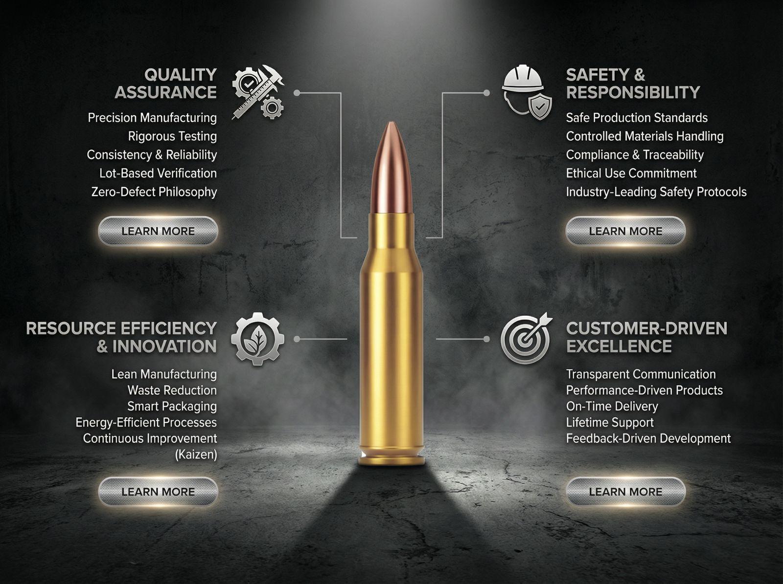 At Precision Ordinate, our core values revolve around our customers and the principles that support a safe and secure society. Our mission is not only to provide high-quality ammunition at competitive prices but also to deliver a transparent, trustworthy, and responsible service experience.